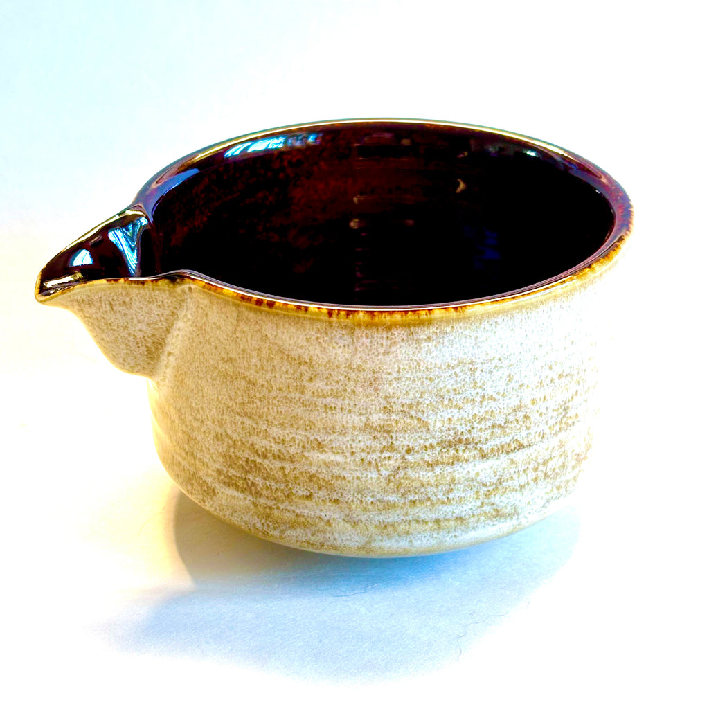 Ce chawan (bol à matcha) a tout ce qu'il faut pour la bonne préparation du matcha mais comporte aussi un bec verseur pratique pour séparer la boisson dans de plus petites tasses ou pour la transférer dans un mousseur à lait par exemple.